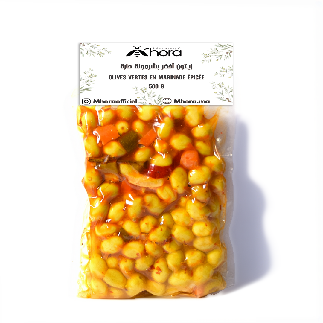 زيتون أخضر بشرمولة حارة OLIVES VERTES EN MARINADE ÉPICÉE