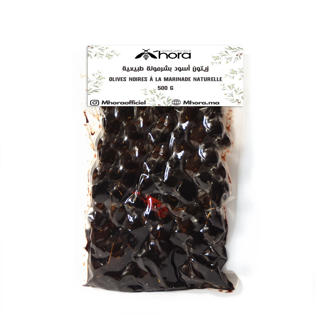 زيتون أسود بشرمولة طبيعية OLIVES NOIRES À LA MARINADE NATURELLE 500 G